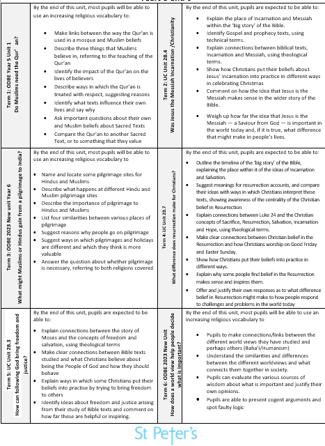We have worked alongside our RE advisor to tailor the locally agreed syllabus to our specific context, using the scheme 'Understanding Christianity' to support resourcing of lessons. St Peter's RE curriculum is both academically rigorous and personally significant.