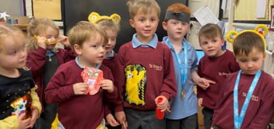 We were able to mix with our friends from other classes and enjoy a cinema treat with popcorn and juice. Father Christmas also popped in and left us some presents!